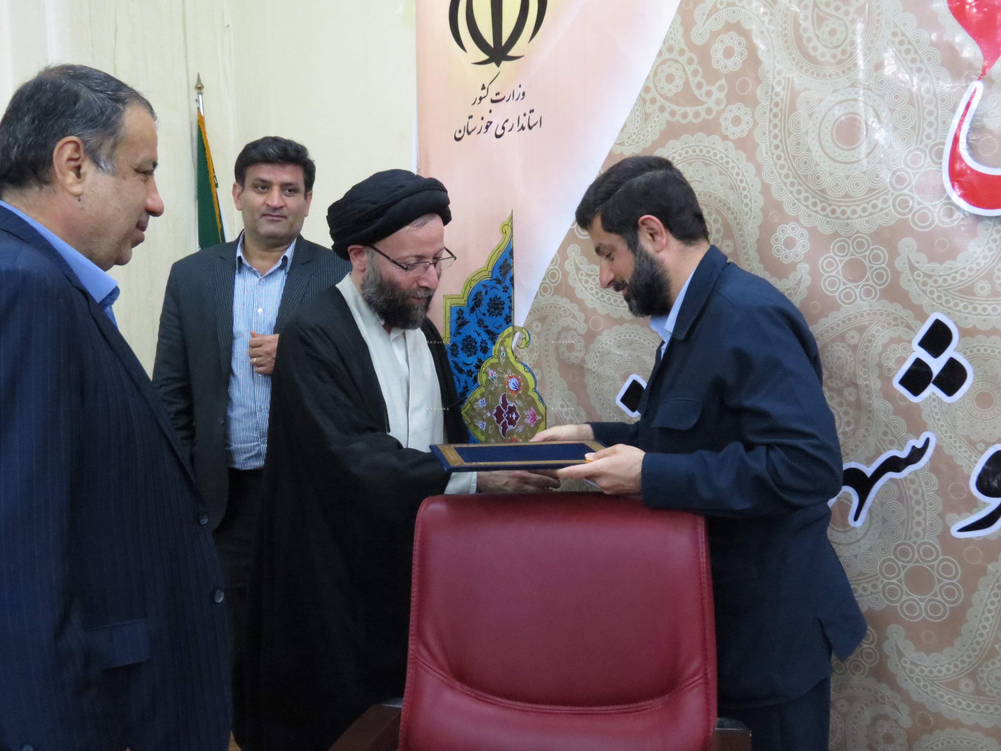 همچنین لوح سپاس از اعضای شورا از طرف استاندار خوزستان به نمایندگی از تک تک اعضاء به حجت السلام شفیعی نماینده ولی فقیه در دانشگاههای خوزستان اهداء شد.