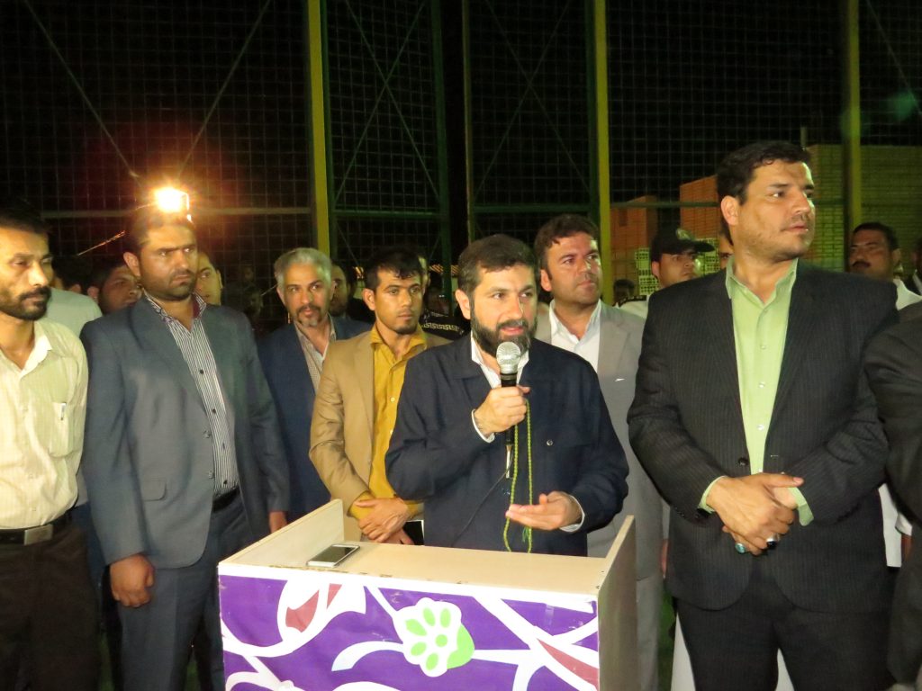 در ابتدای این مراسم افشین حیدری مدیرکل ورزش و جوانان خوزستان گفت: با توجه به تکلیفی که جناب دکتر شریعتی استاندارخوزستان بر گردن تک تک مسئولین و مدیران استانی در رابطه با محرومیت زدائی و اینکه بیشترین توان خود را در مناطق محروم و خصوصاً حاشیهها به کار گیرند، امشب در حضور مردم عزیز منطقه عین دو، زمین چمن مصنوعی را افتتاح کردیم.