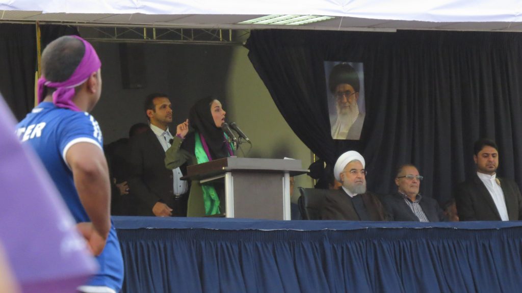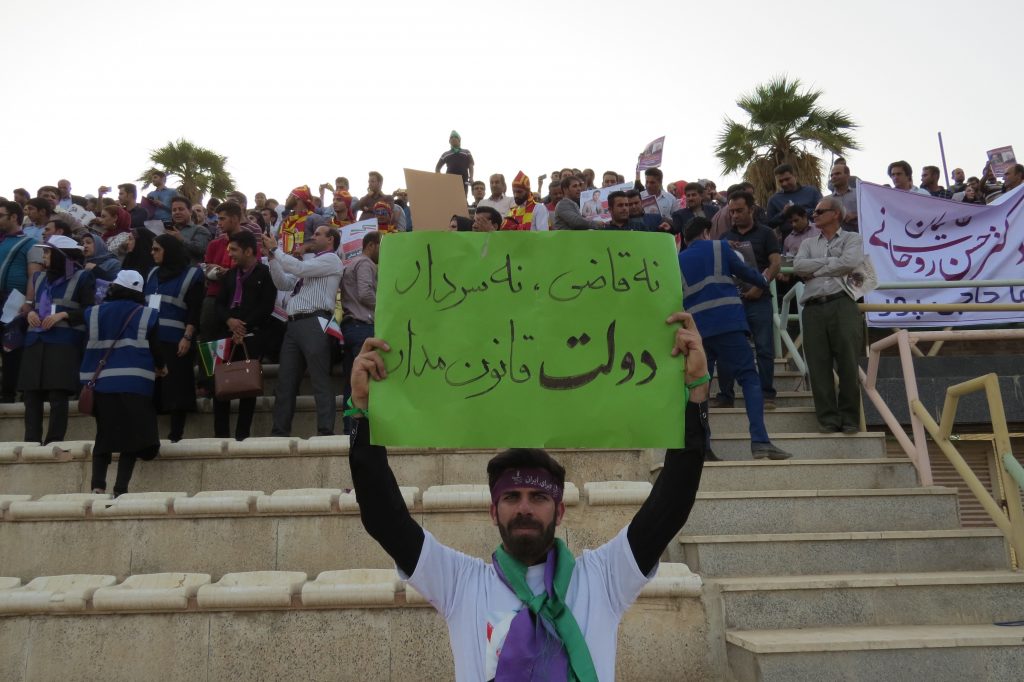 گفتنی است از دیگر نکات جالب توجه این مراسم شعرها، سرودها و دستنوشتههای زیبایی بود که در حین سخنرانی دکتر روحانی توسط حضار با یک هماهنگی مثالزدنی سروده، اجراء و به نمایش گذاشته میشد که از آنجمله میتوان به سرود یاردبستانی، شعر «ما که هوا نداریم ولی هواتو داریم » و پلاکارتهایی با مضمون «خوزستان یک کلام، روحانی وسلام» اشاره کرد.