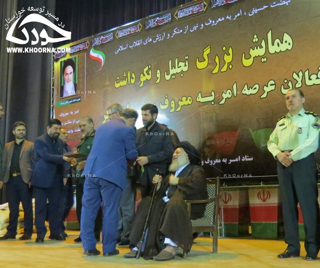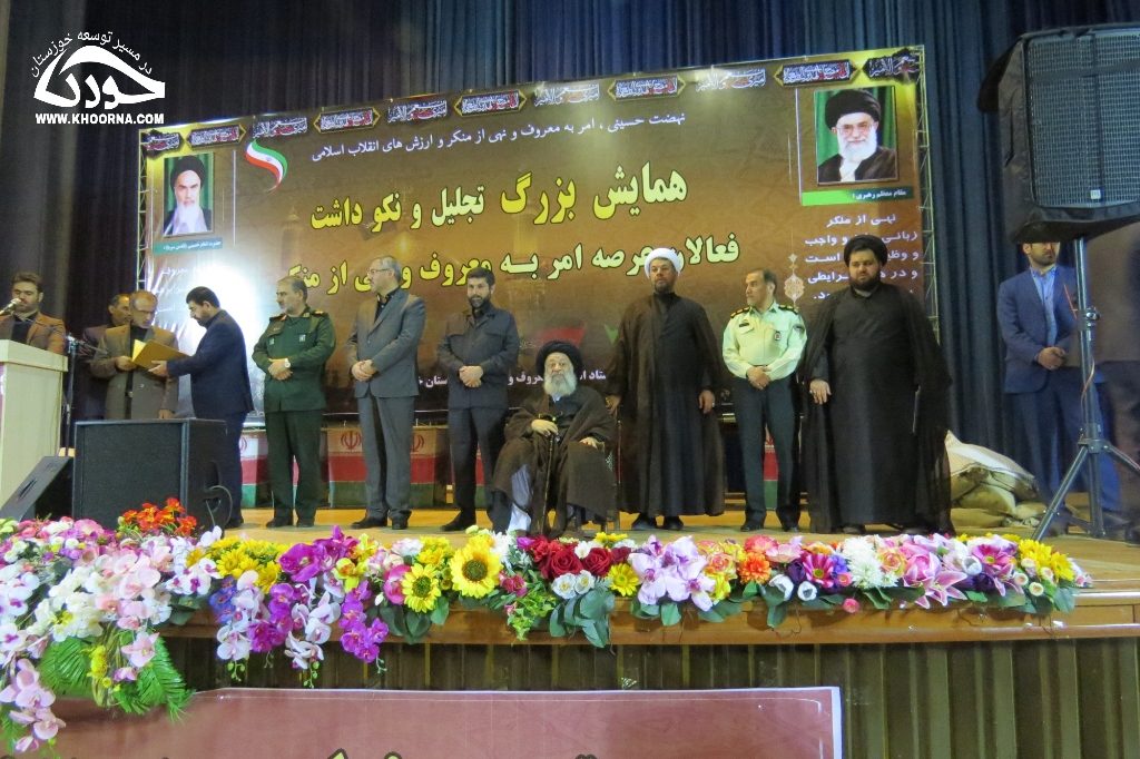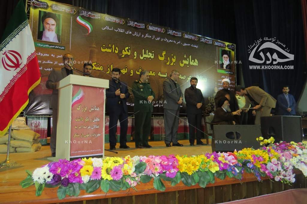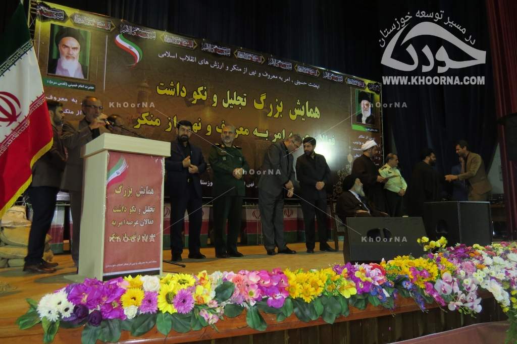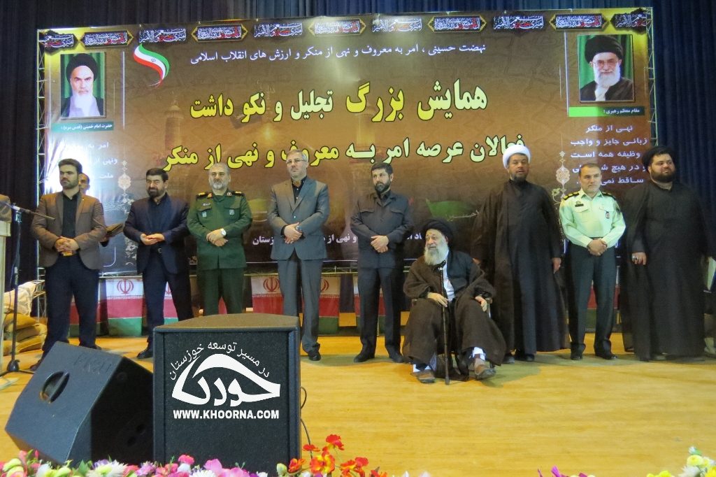 گفتنی است در پایان این همایش از خانواده سه تن از شهدای امر به معروف و نهی از منکر استان خوزستان عبدالرضا بهمئی، محمدحسین راستگو و عاصی حسینپور به همراه سه تن از جانبازان این فرضیه با نامهای عبدالعلی رحیمی از شهرستان بهبهان، خالد حمودی عبیدی از اهواز و سجاد سابقی از شوشتر تجلیل بعمل آمد.