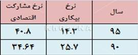 - تازهترین گزارش از وضعیت اشتغالزایی دو علامت متناقض از بازار کار را مخابره میکند. نرخ مشارکت اقتصادی عبارت است از نسبت جمعیت فعال (شاغل و بیکار) ۱۰ ساله و بیشتر به جمعیت در سن کار ۱۰ ساله و بیشتر، ضربدر ۱۰۰ افزایش نرخ بیکاری باوجود حفظ روند اشتغالزایی از بارزترین ویژگیهای بازار کار در فصل نخست امسال است. نرخ بیکاری و نسبت اشتغال که عمدتاً از سوی مراکز رسمی آماری ارائه میشوند از شاخصهای تعیینکننده این دو متغیر مهم اقتصادی هستند. نرخ بیکاری عبارت از نسبت جمعیت بیکار به جمعیت فعال است. منظور از جمعیت فعال تمام افراد ۱۰ ساله و بیشتر که در هفته قبل از هفته آمارگیری یا شاغل بودهاند یا بیکار محسوب شده باشند. طرح آمارگیری نیروی کار از سوی مرکز آمار ایران، باهدف برآورد شاخصهای نیروی کار بهصورت فصلی و سالانه، در ماه میانی هر فصل اجرا میشود. در این طرح همچنین تغییرات شاخصها در کل کشور، نقاط شهری، نقاط روستایی و تغییرات سالانه در استانها با روش نمونهگیری چرخشی گزارش میشود.