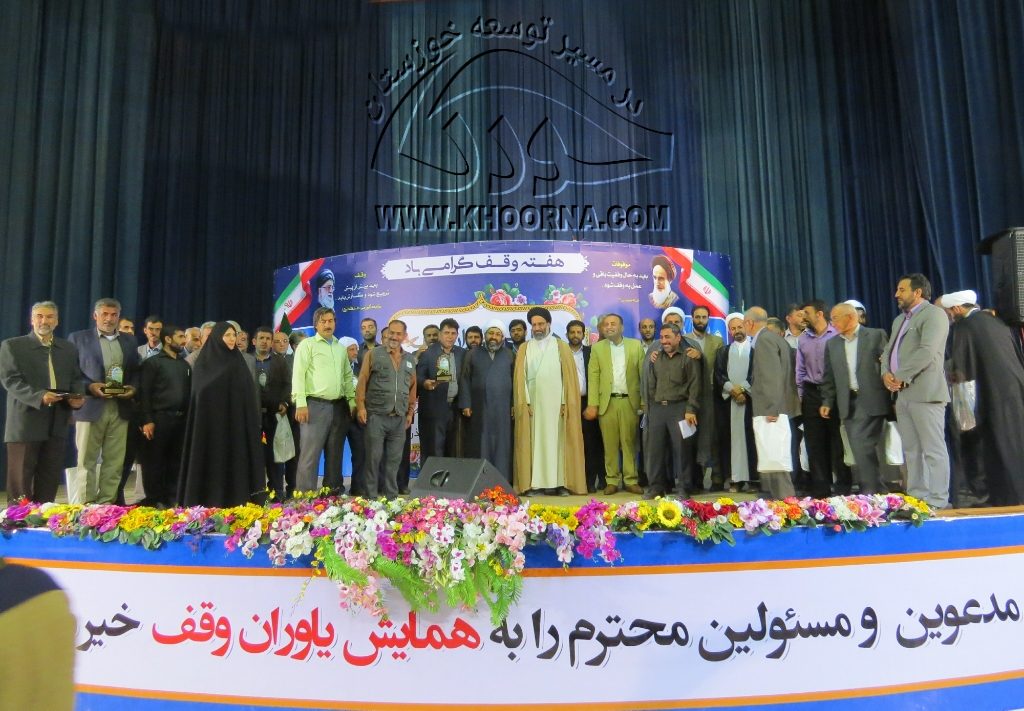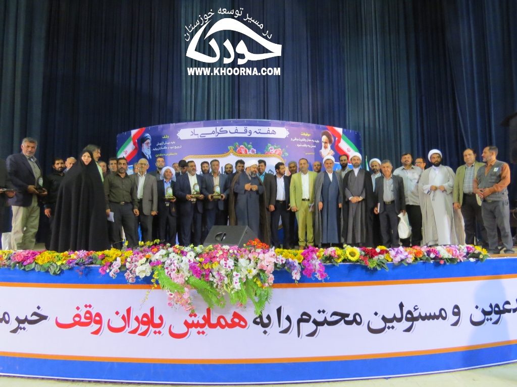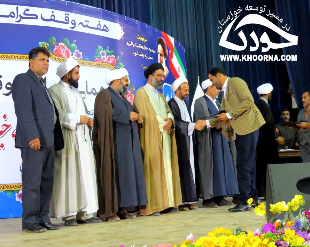 در پایان این مراسم هم با اهدای لوح تقدیر و سپاس از خیرین، خادمین و فعالان عرصه وقف در استان خوزستان نیز تجلیل به عمل آمد.