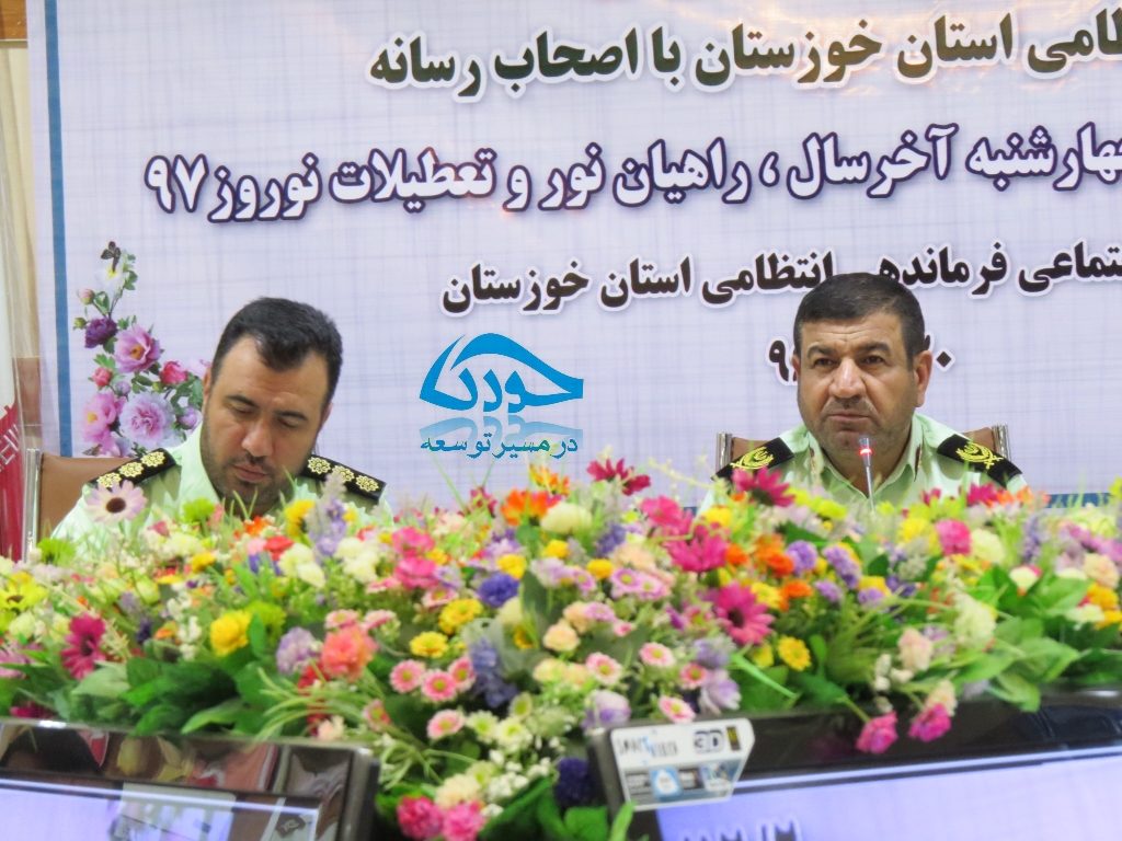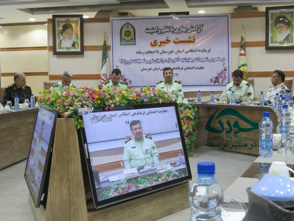 خورنا-احمدرضارستمی: در روز یکشنبه ۲۰ اسفند ۱۳۹۶ حیدر عباسزاده فرمانده نیروی انتظامی خوزستان نشستی خبری را با موضوع تمهیدات پلیس برای چهارشنبه سوری، تعطیلات نوروزی و کاروانهای راهیان نور در تالار اجتماعات ستاد فرماندهی نیروی انتظامی استان خوزستان برگزار شد.