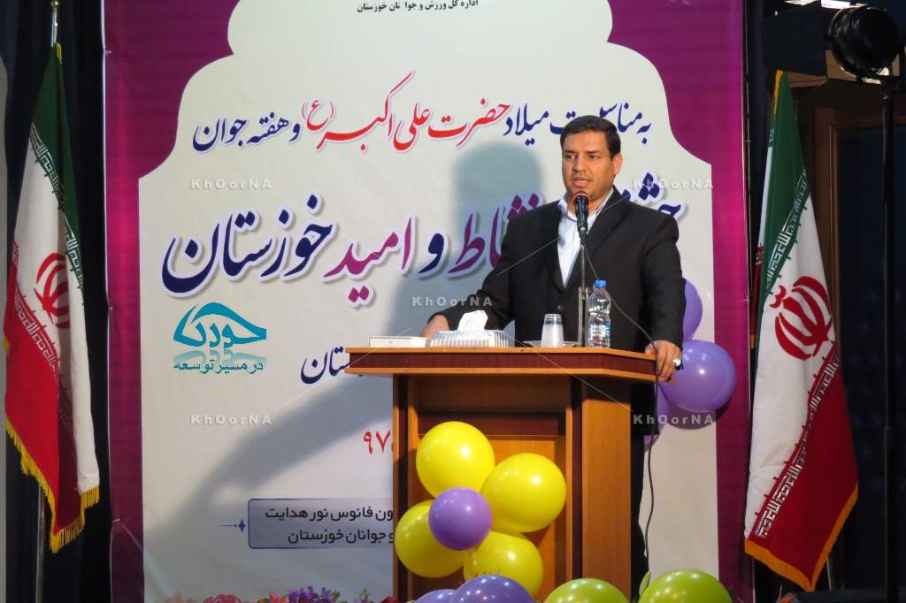 _خورنا-احمدرضارستمی: در جشنواره نشاط و امید و تجلیل از جوانان برتر استان خوزستان که به مناسبت میلاد حضرت علی اکبر (ع) و روز جوان شامگاه سه شنبه ۱۱ اردیبهشت ۹۷ در استانداری خوزستان برگزار شد افشین حیدری با بیان اینکه درد دلهای زیادی در حوزه جوانان وجود دارد اظهار کرد: بنده افتخار دارم که اولین مدیر زیر ۴۰ سالی هستم که توسط وزیر ورزش و جوانان انتخاب شدهام.