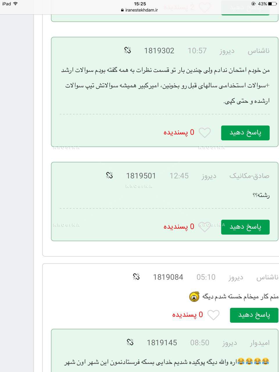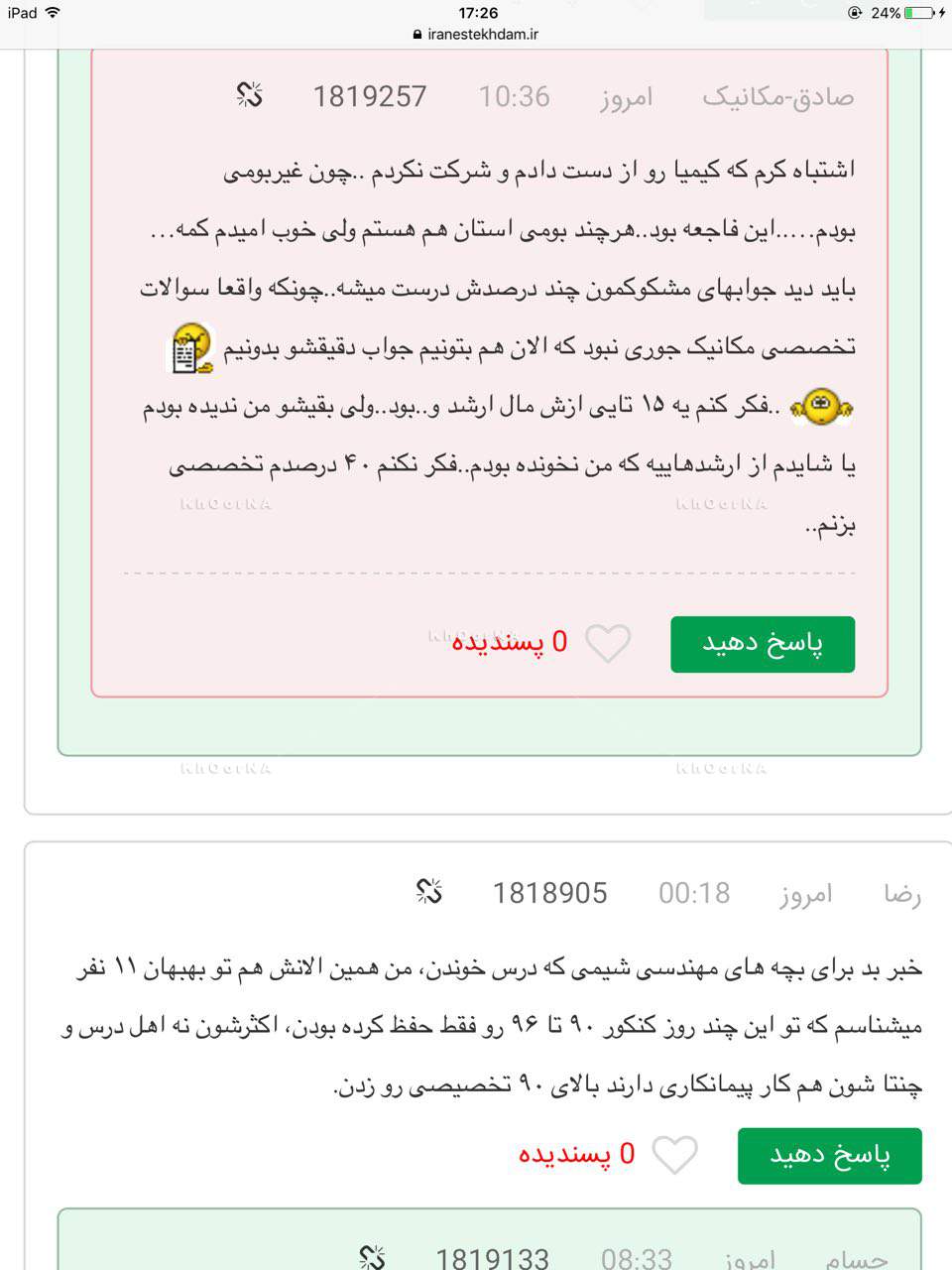 کامنت های شرکت کنندگان پای یکی از مطالب سایت ایران استخدام