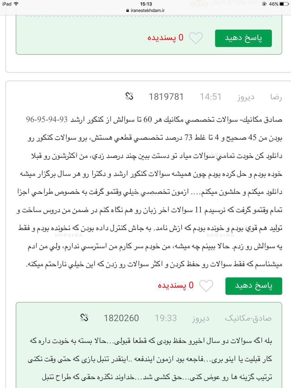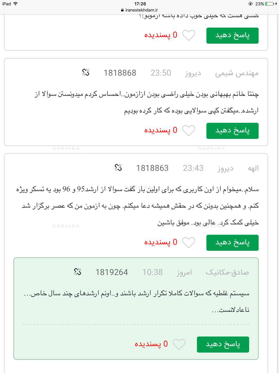 کامنت های زیر نیز نشان دهنده کپی بودن آزمون و متضرر شدن خیل کثیری از آزمون دهندگان است.