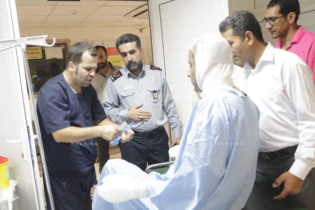 آتشپاد علی تراب پور در ادامه اظهار داشت: لذا فرمانده تیم عملیاتی به منظور کنترل وضعیت و منصرف نمودن شخص به درب فروشگاه نزدیک میشود که متاسفانه ، فردمذکور باروشن نمودن فندک همراه خود موجب انفجار محل میشود که براثرانفجارمغازه ۱۰ نفر مصدوم میشوند که شش نفر از جمله فرد خودکشی کننده، فرمانده تیم عملیات آتش نشانی و تعدادی از شهروندان مصدوم وجهت درمان به بیمارستان های گلستان و طالقانی اهواز اعزام و چهار نفر مابقی بصورت سرپایی در محل توسط عوامل اورژانس پانسمان و مداوا میشوند .