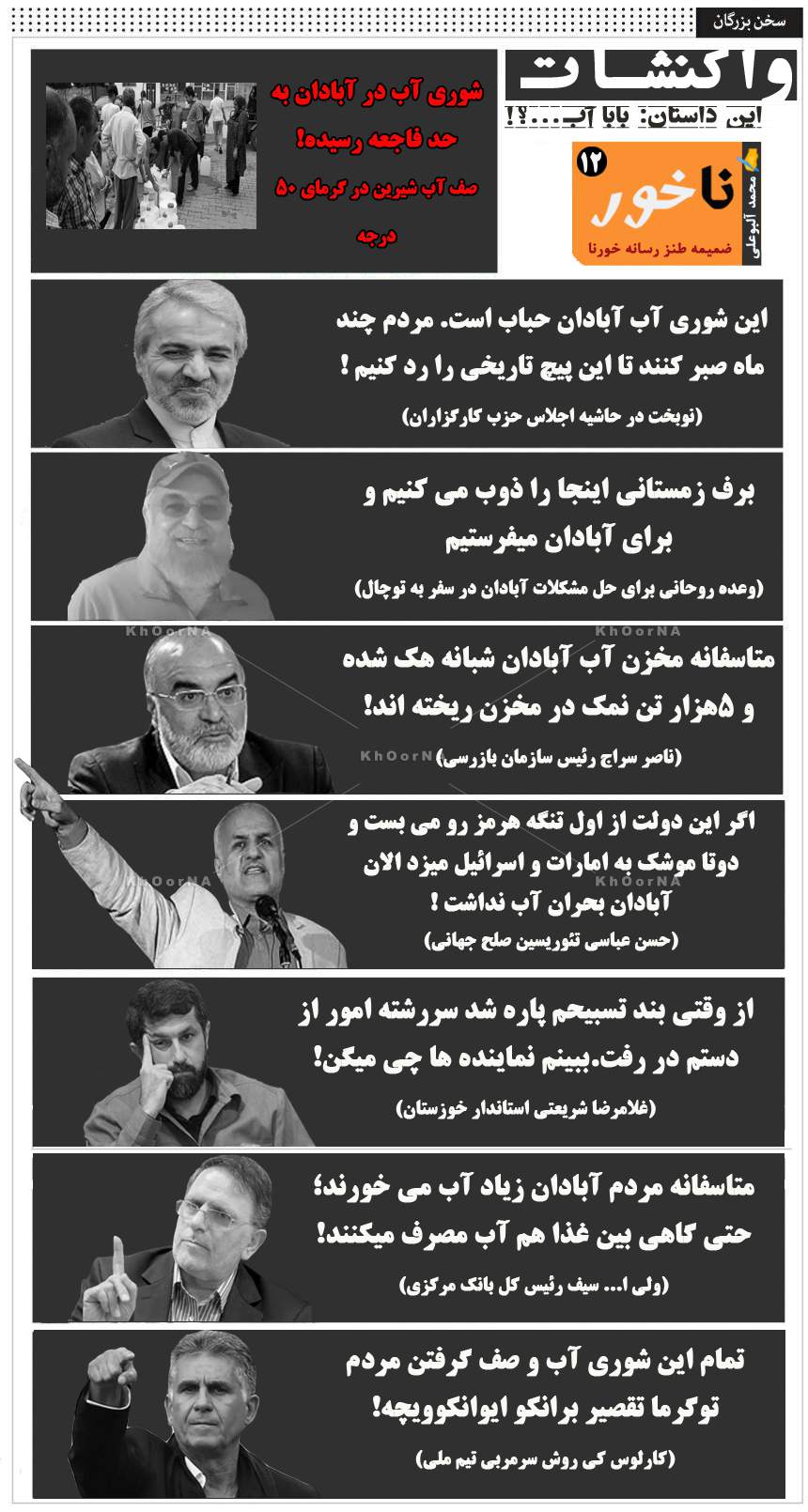 علی چاروسائی مدیرمسئول 7 سال پیش 7 تیر 1397 19:04 قلم: چاپ شماره: ۱۲۴۷۴۵ این داستان: بابا آب...؟! ناخور ۱۲/نگرانی بزرگان درمورد آب آبادان طنز مهمترین عناوین ناخور مشاهده مطالب زیر به شما پیشنهاد میشود برق، ارزون؛ حرف، مفت! طنز/مصاحبه با ملی پوشان متجاوز: از بچگی روی سوسانو کراش داشتم! اشتباه محاسباتی کردیم طنز/ طرح نجات خوزستان؛ انگشت بزن، برگرد خونه! توضیح خورنا پیرامون یک عکس ناخور۲۳/تازه ترین راهکارهای مدیریت انرژی در خوزستان!! ناخور ۲۲/خروجی فوق العاده راهبردی ستاد کرونای استان! لغو پاسخنشانی ایمیل شما منتشر نخواهد شد. بخشهای موردنیاز علامتگذاری شدهاند * Δ