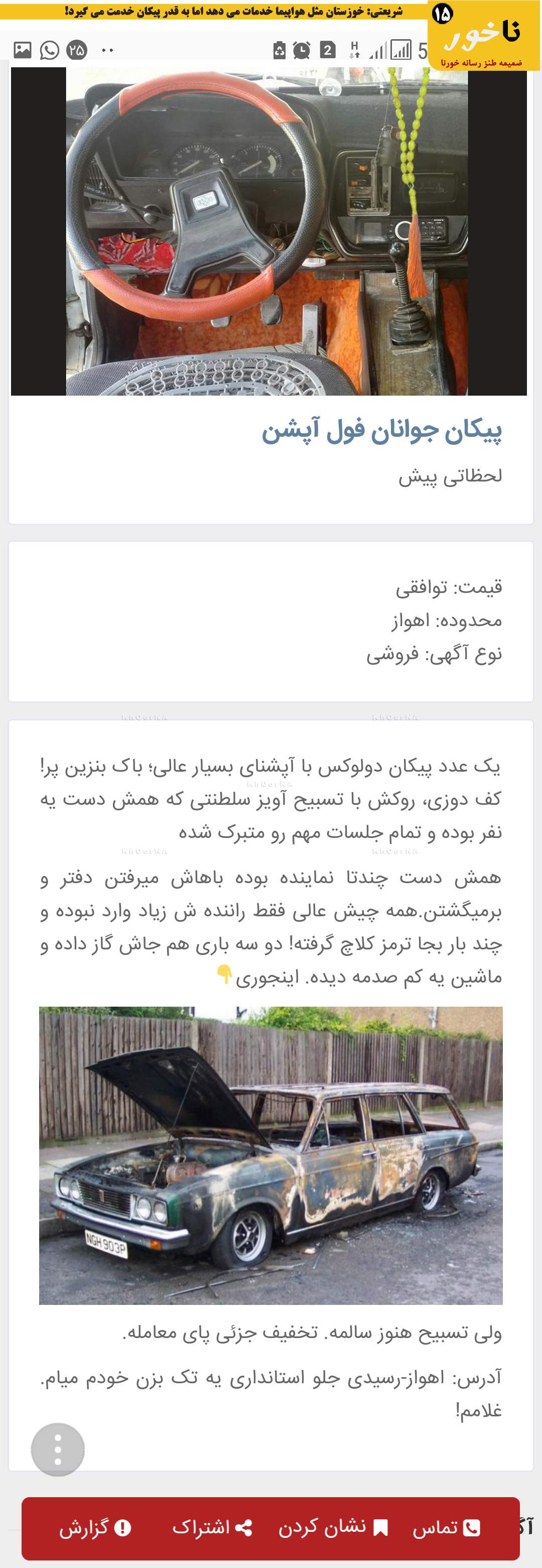 علی چاروسائی مدیرمسئول 7 سال پیش 25 شهریور 1397 16:13 قلم: چاپ شماره: ۱۲۷۰۳۶ خوزستان، هواپیما، پیکان و... ناخور ۱۵/پیکان جوانان فول آپشن جهت فروش! طنز مهمترین عناوین آگهی استاندار پیکان ناخور مشاهده مطالب زیر به شما پیشنهاد میشود برق، ارزون؛ حرف، مفت! طنز/مصاحبه با ملی پوشان متجاوز: از بچگی روی سوسانو کراش داشتم! اشتباه محاسباتی کردیم طنز/ طرح نجات خوزستان؛ انگشت بزن، برگرد خونه! توضیح خورنا پیرامون یک عکس ناخور۲۳/تازه ترین راهکارهای مدیریت انرژی در خوزستان!! ناخور ۲۲/خروجی فوق العاده راهبردی ستاد کرونای استان! لغو پاسخنشانی ایمیل شما منتشر نخواهد شد. بخشهای موردنیاز علامتگذاری شدهاند * Δ