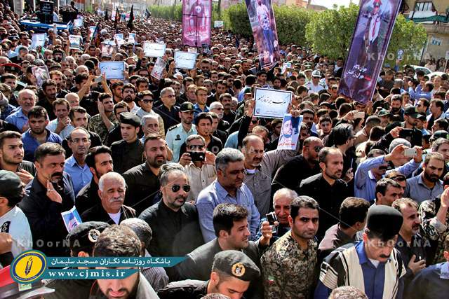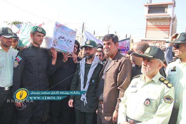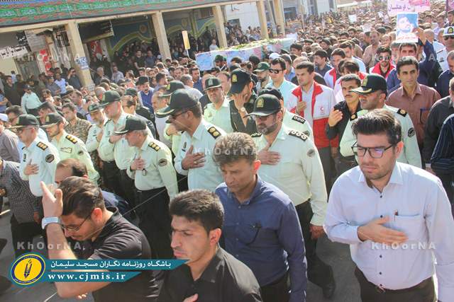 به گزارش پایگاه خبری خورنا و به نقل از سایت خبری باشگاه روزنامه نگاران مسجدسلیمان، این مراسم با حضور گسترده مردم، مسئولین، نیروهای نظامی و انتظامی، جامعه فرهنگیان، بازاریان، دانشگاهیان، حوزویان، هنرمندان و… با شکوه هرچه تمام تر برگزار شد.