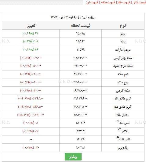 قیمت طلا، قیمت دلار، قیمت سکه و قیمت ارز امروز ۹۷/۰۷/۱۱