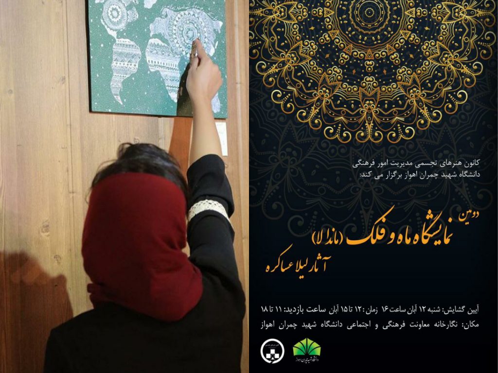 دومین نمایشگاه نقاشی "ماه و فلک" شامل آثار ماندالای لیلا عساکره هنرمند خوزستانی به همت معاونت فرهنگی دانشگاه شهیدچمران اهواز در نگارخانه مهر برپا می‎شود.
