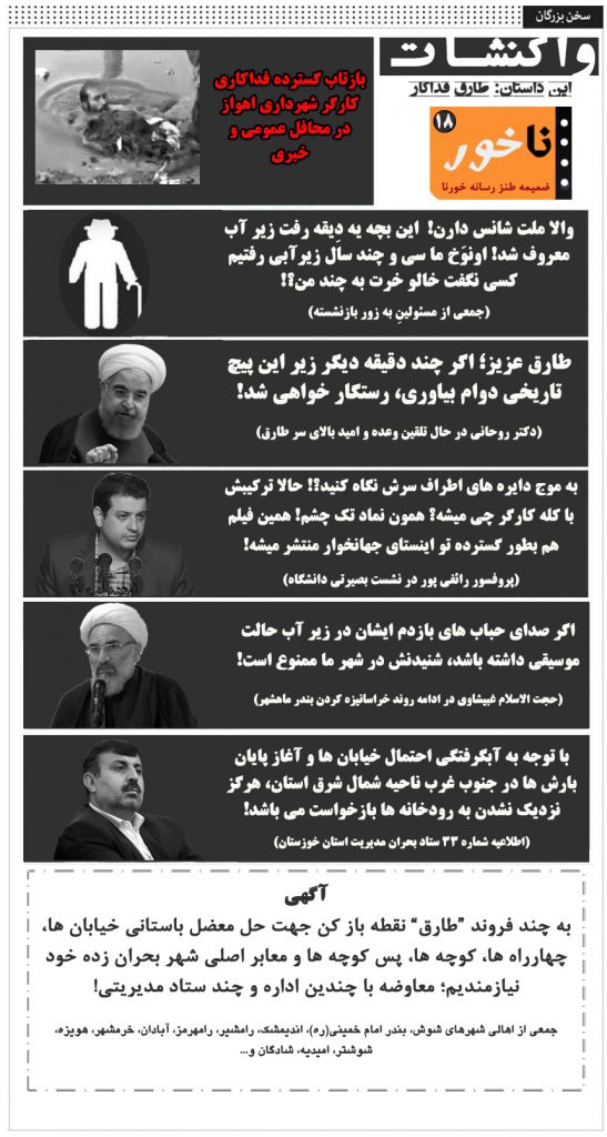 علی چاروسائی مدیرمسئول 7 سال پیش 16 آذر 1397 17:47 قلم: چاپ شماره: ۱۳۰۶۲۸ واکنشات؛ ناخور ۱۸/این داستان: طارق فداکار! طنز مهمترین عناوین مشاهده مطالب زیر به شما پیشنهاد میشود برق، ارزون؛ حرف، مفت! طنز/مصاحبه با ملی پوشان متجاوز: از بچگی روی سوسانو کراش داشتم! اشتباه محاسباتی کردیم طنز/ طرح نجات خوزستان؛ انگشت بزن، برگرد خونه! توضیح خورنا پیرامون یک عکس ناخور۲۳/تازه ترین راهکارهای مدیریت انرژی در خوزستان!! ناخور ۲۲/خروجی فوق العاده راهبردی ستاد کرونای استان! لغو پاسخنشانی ایمیل شما منتشر نخواهد شد. بخشهای موردنیاز علامتگذاری شدهاند * Δ