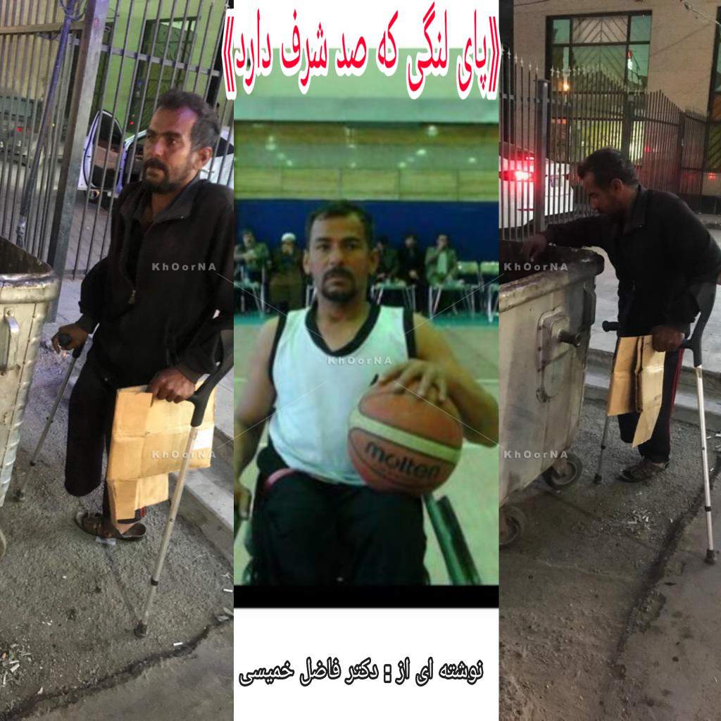 آری ! خلیل بریهی از بازیکنان خیلی خوب بسکتبال تیم معلولین با دو پسر نُه و سیزده ساله که از طرف مادری یتیم و بجز خدا و پدر معلولشان کسی را ندارند، زندگی محنت آلودی دارد، وقتی او را به فضای ورزش آوردم از مسابقات و قهرمانیها برایم گفت و عکسهایی نشانم داد، که با عکس هایی که از او کنار سطل زباله گرفتم، و در هر دو عکس مردانه مشکلات را به مبارزه میطلبید، عزت انسان را در او دیدم،