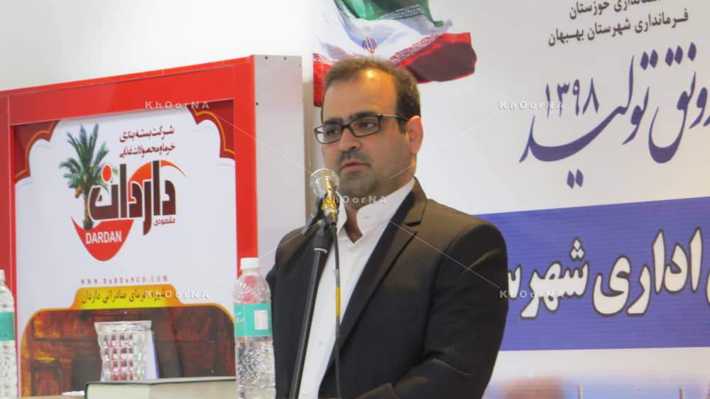 خورنا | پدرام کسائی: به گزارش پایگاه خبری خورنا، اولین جلسه شورای اداری شهرستان بهبهان در سال ۱۳۹۸، با توجه به نامگذاری امسال از سوی مقام معظم رهبری به نام سال رونق تولید، و با هدف بررسی موانع و مشکلات تولید کنندگان و صنعت گران بهبهان، در سالن اجتماعات شهرک صنعتی بهبهان برگزار شد.