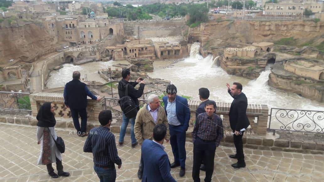 به گزارش خورنا و به نقل از روابط عمومی و امور بینالملل ادارهکل میراث فرهنگی، صنایع دستی و گردشگری خوزستان، درپی سیلابهای اخیر در استان، روز جمعه ۲۳ فروردینماه ۹۸، محمدحسن طالبیان معاون میراث فرهنگی کشور، فرهاد عزیزی مدیرکل امور پایگاههای میراث جهانی سازمان میراث فرهنگی، سیدحکمتاله موسوی مدیرکل میراث فرهنگی خوزستان به همراه محمدحسین ارسطوزاده مدیر پایگاه میراث جهانی سازههای آبی ـ تاریخی شوشتر، پنبهدانه فرماندار شوشتر و جودانی جیگلی کارشناس اعزامی از سوی سازمان یونسکو برای بررسی وضعیت پایداری سازههای آبی ـ تاریخی در این شهرستان حضور یافتند.