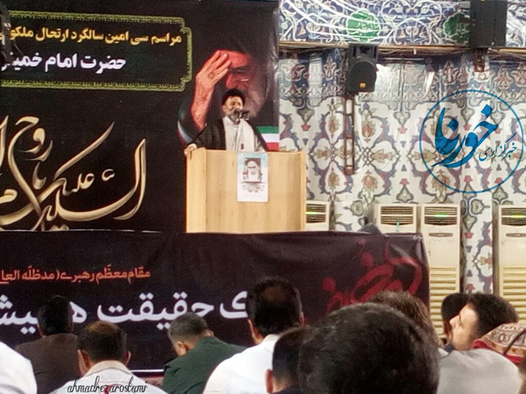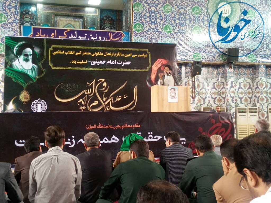 در ابتدای این مراسم حجتالاسلام سید لطف الله سپهر ﺭﺋﯿﺲ ﺷﻮﺭﺍﯼ ﻫﻤﺎﻫﻨﮕﯽ ﺗﺒﻠﯿﻐﺎﺕ ﺍﺳﻼﻣﯽ ﺧﻮﺯﺳﺘﺎﻥ اظهار کرد: امام خمینی دارای ویژگیهایی منحصر به فردی از تمامی انبیاء و اولیای الهی بود و توانست انقلابی را برای زمینه سازی ظهور امام زمان در ایران به پیروزی برساند.