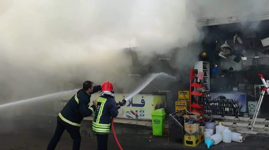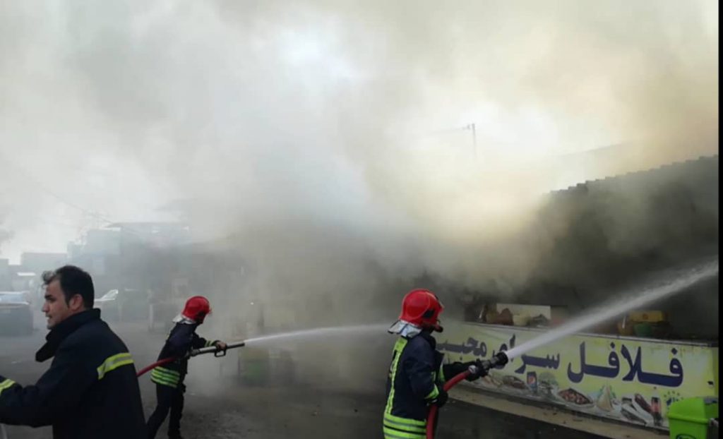 مهار آتش سوزی در چهار باب مغازه فلال فروشی در میدان تپه اهواز