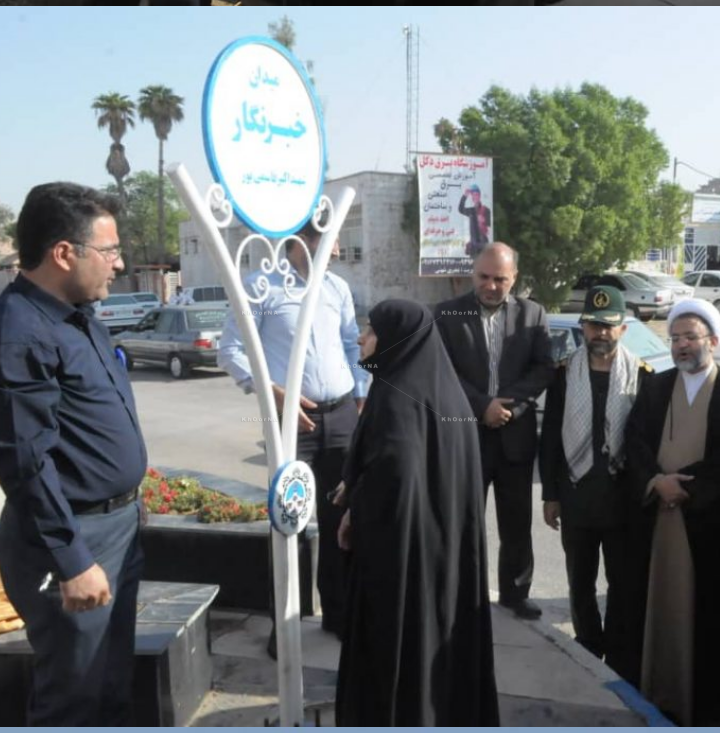 آئین رونمایی از تابلوی میدان خبرنگار ، یادمان شهید اکبر قاسمی پور برگزار شد.