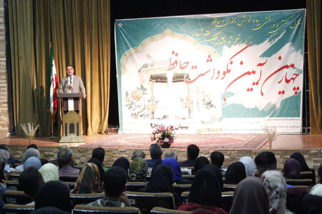 به گزارش خبرگزاری خورنا به نقل از روابط عمومی اداره کل فرهنگ و ارشاد اسلامی خوزستان، چهارمین نکوداشت حافظ توسط اداره فرهنگ و ارشاد اسلامی بهبهان و انجمن فرهنگی حافظ پژوهان بهبهان با حضور محمد جوروند مدیر کل فرهنگ و ارشاد اسلامی خوزستان و جمعی از فرهیختگان و هنرمندان این شهرستان، یکشنبه ۲۱ مهرماه در مجتمع فرهنگی و هنری آفاق برگزار شد.