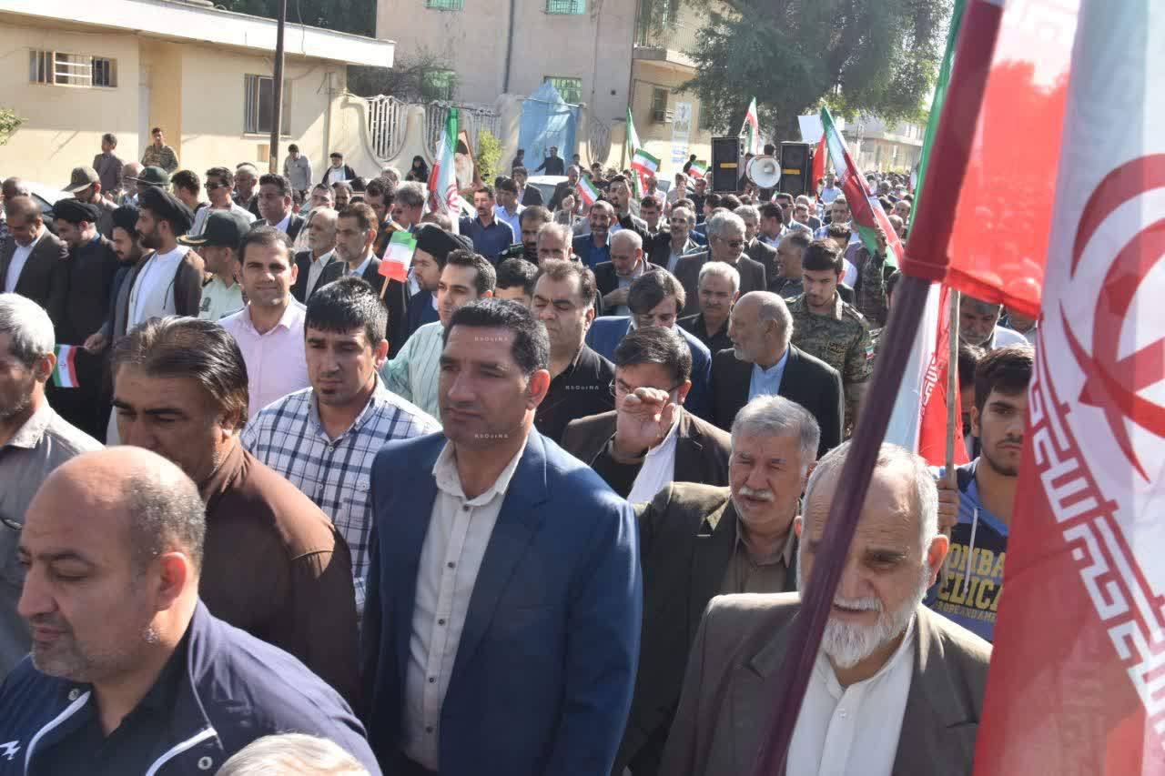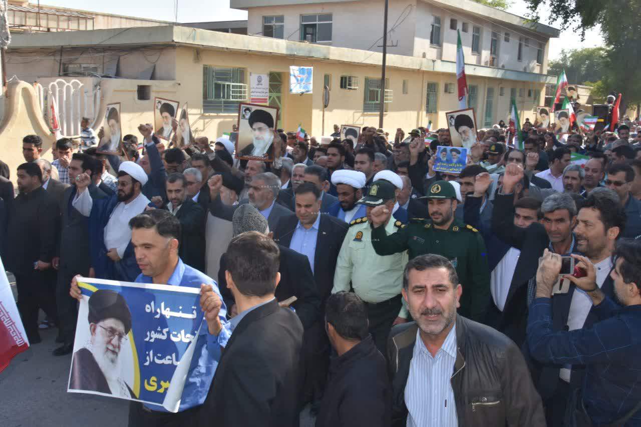 خورنا_ مردم شهیدپرور اندیمشک برای دفاع از ارزشهای انقلاب ، امنیت و ولایت و همچنین اعلام انزجار از اشرار خود فروخته، و محکوم کردن اغتشاشات به میدان آمدند.