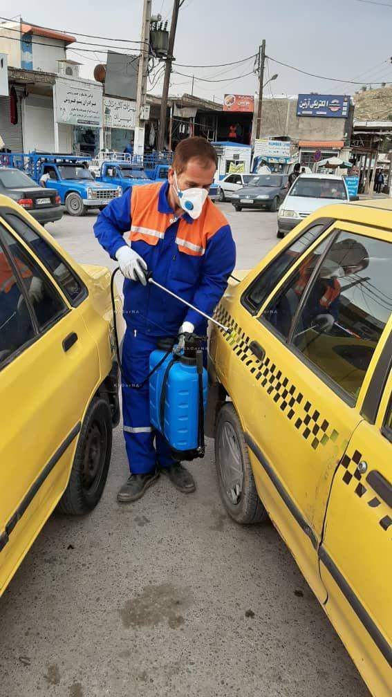 توزیع ماسک و دستکش توسط واحد تاکسیرانی شهرداری مسجدسلیمان در بین تاکسیداران