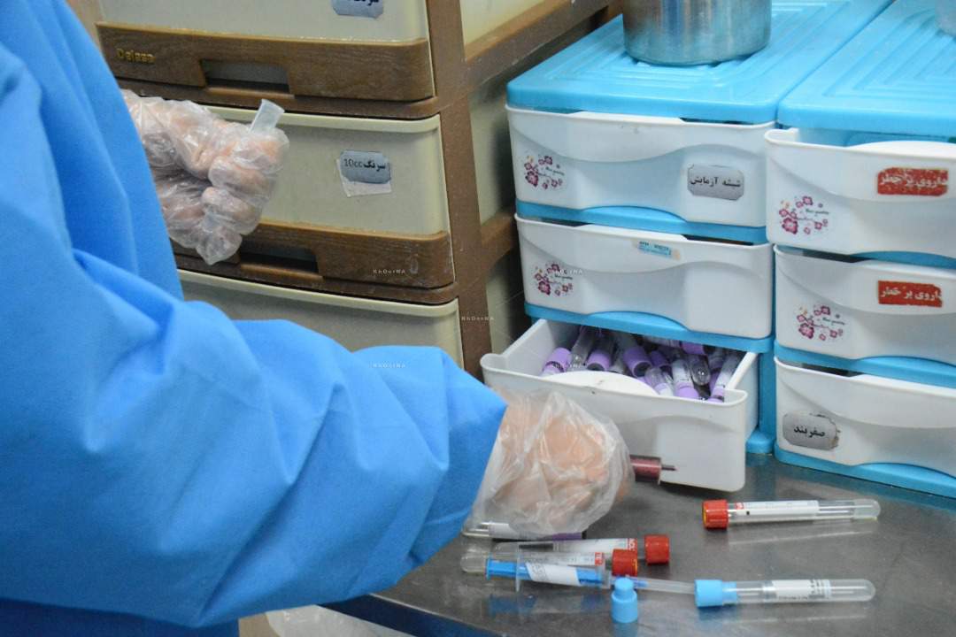 شیشه های نمونه خون بیماران را به دست گرفته تا این شیشه های خونی را به یکی از پرستاران برای انتقال به آزمایشگاه تحویل دهد؛ بعد هم به سراغ کنترل سِرُم بیمار بعدی می رود.