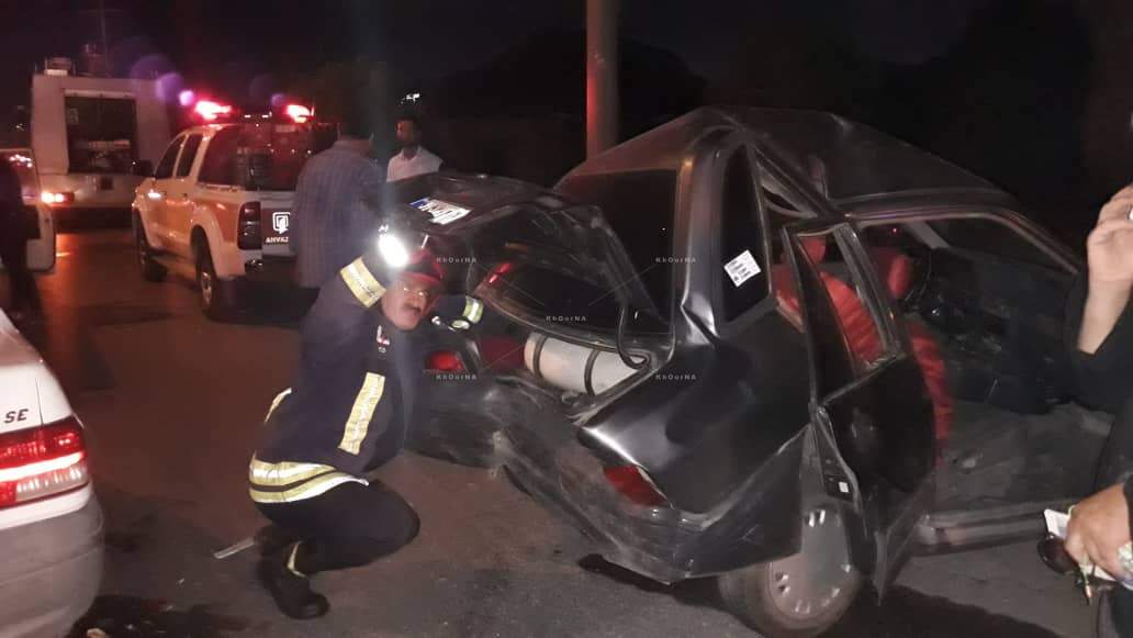 برخورد شدید ۲ پراید در اهواز ۶ مصدوم برجای گذاشت + تصاویر