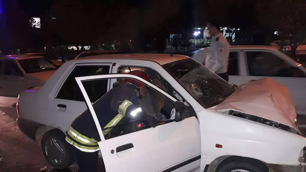 به گزارش خبرگزاری خورنا ابراهیم قنبری با بیان این خبر اظهارکرد: بیست وچهارم مرداد ماه سال جاری ساعت ۲۳ و پنج دقیقه، با تماس تلفنی شهروندی با سامانه ۱۲۵ سازمان، تصادف شدید ۲ دستگاه خودرو پراید در مسیر حدفاصل بیمارستان امیرالمومنین و میدان تپه اعلام شد که به سرعت آتشنشانان ایستگاه آتشنشانی ۶۶ به محل حادثه اعزام شدند.