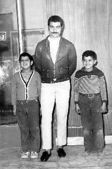 (سال ۱۳۵۰)بهروز وثوقی و دو فرزند علی اکبر اقبال در هتل اقبال اندیمشک