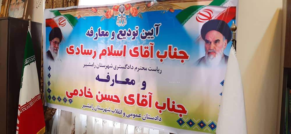 در این مراسم اسلام رسادی که قبلا دادستان عمومی و انقلاب شهرستان رامشیر بود به عنوان رییس دادگستری شهرستان معرفی شد و به جای وی حسن خادمی نیز به عنوان دادستان عمومی وانقلاب شهرستان رامشیر معرفی شد.