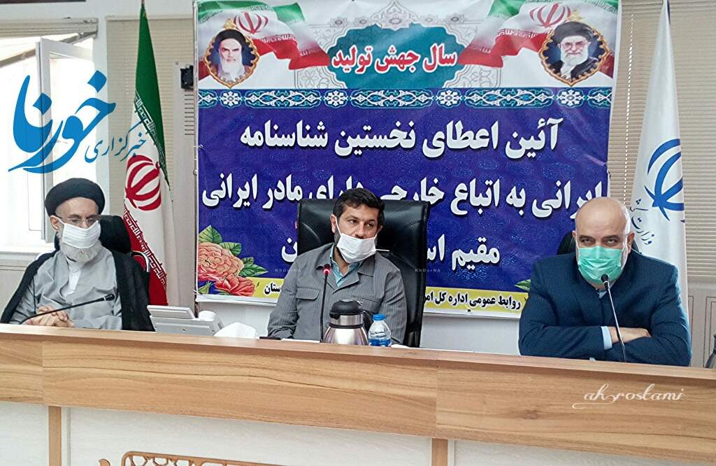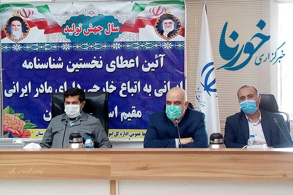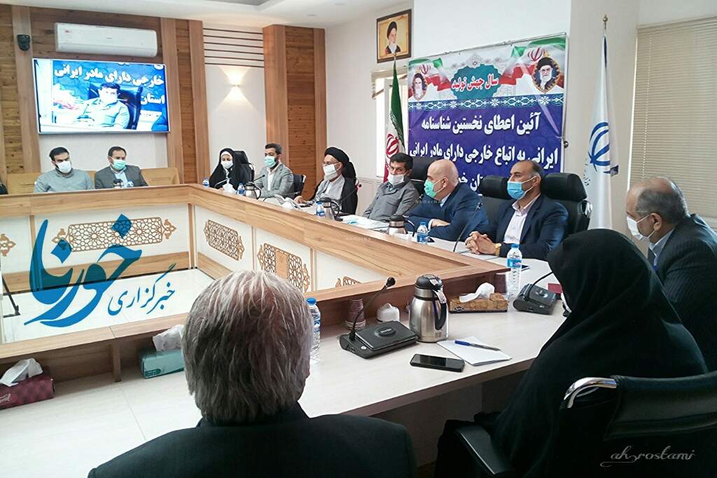 مراسم اعطای نخستین شناسنامه ایرانی به اتباع خارجی دارای مادر ایرانی امروز شنبه چهارم بهمن ماه ۹۹ در استانداری خوزستان برگزار شد.