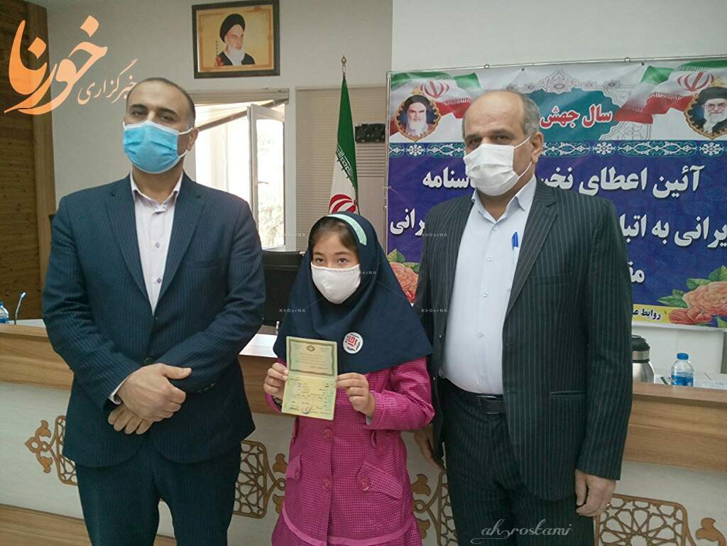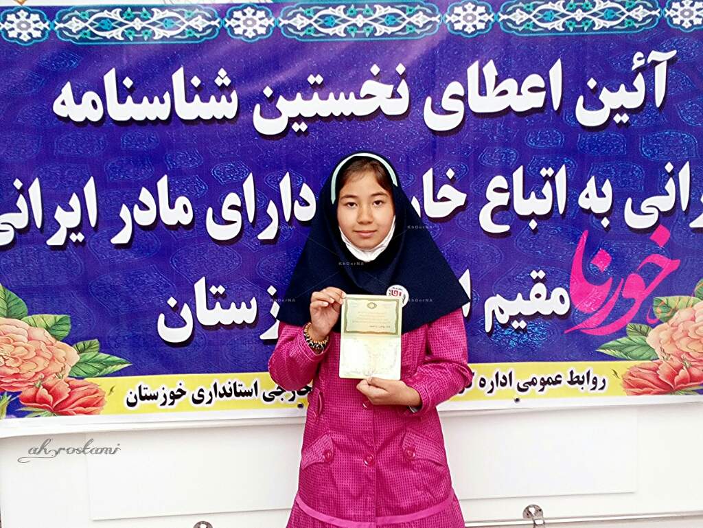 به گزارش خبرنگار خورنا از اهواز در این مراسم با حضور استاندارخوزستان و جمعی از مسئولین استانی به فاطمه ظریف با پدر خارجی و مادر ایرانی که در استان خوزستان ساکن هستند شناسنامه ایرانی تقدیم شد.