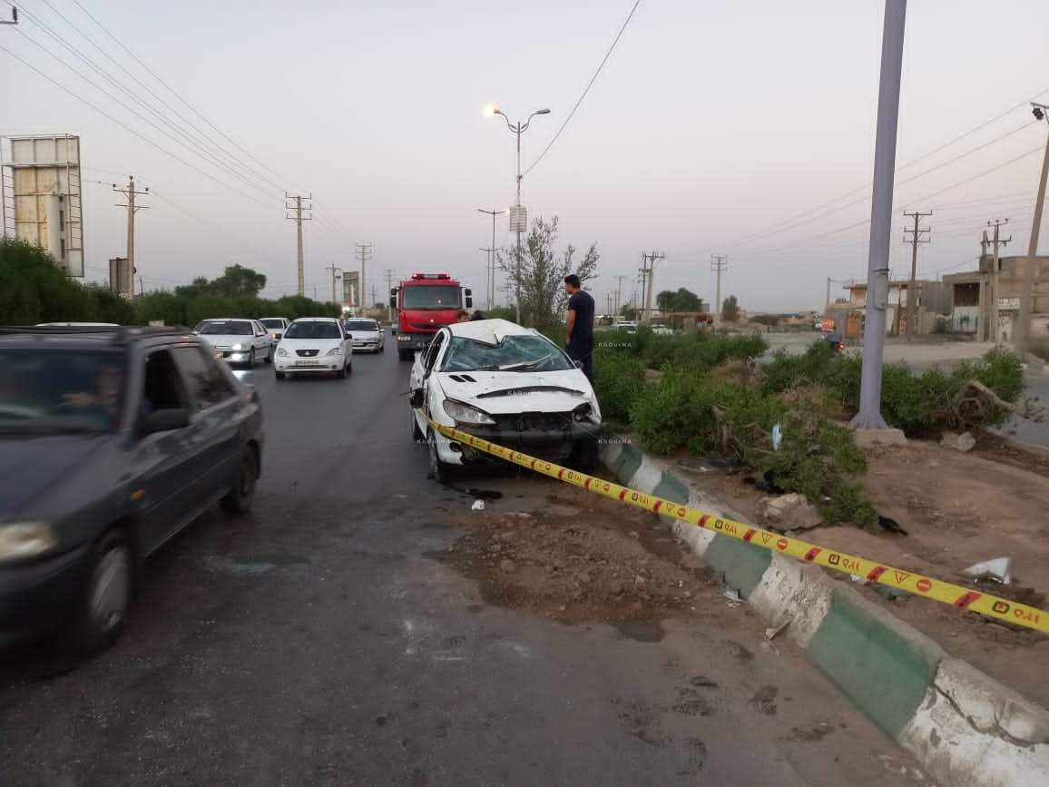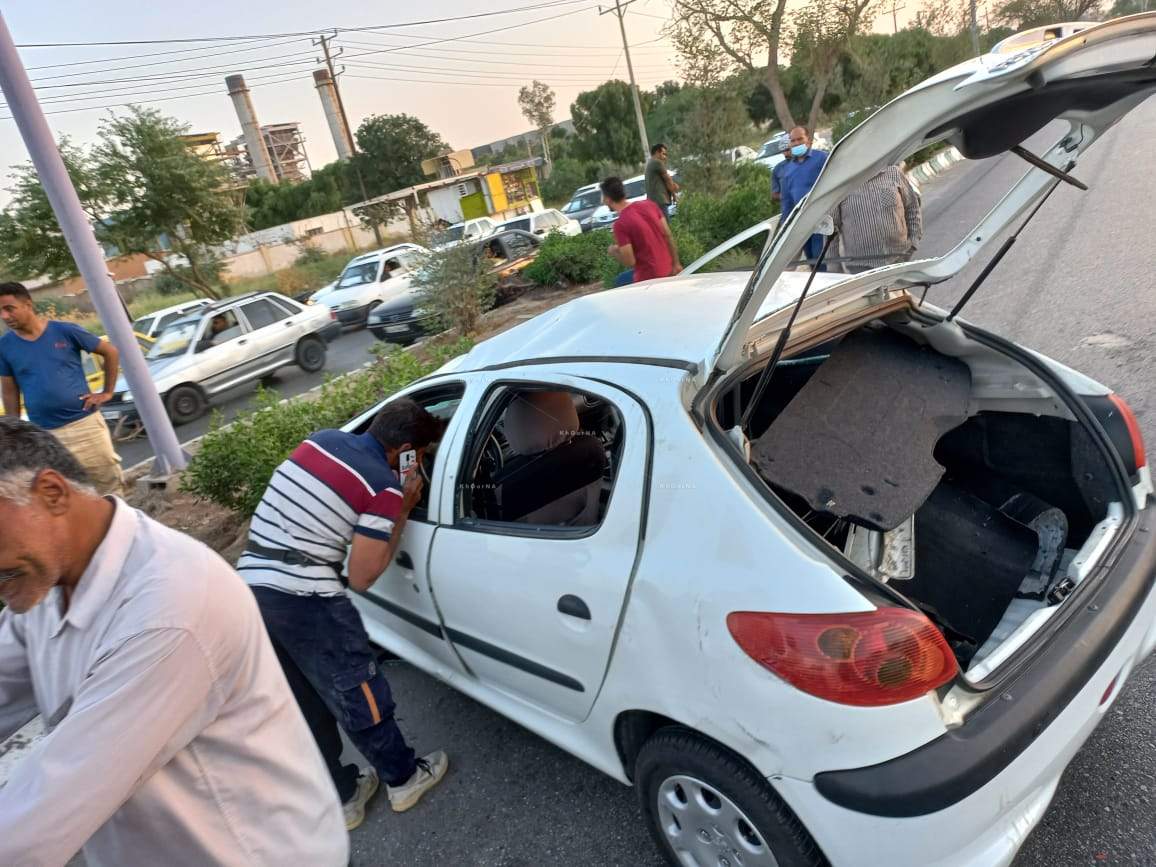 مصدومیت ۳ نفر براثر واژگونی پژو ۲۰۶ در منطقه زرگان اهواز + تصاویر