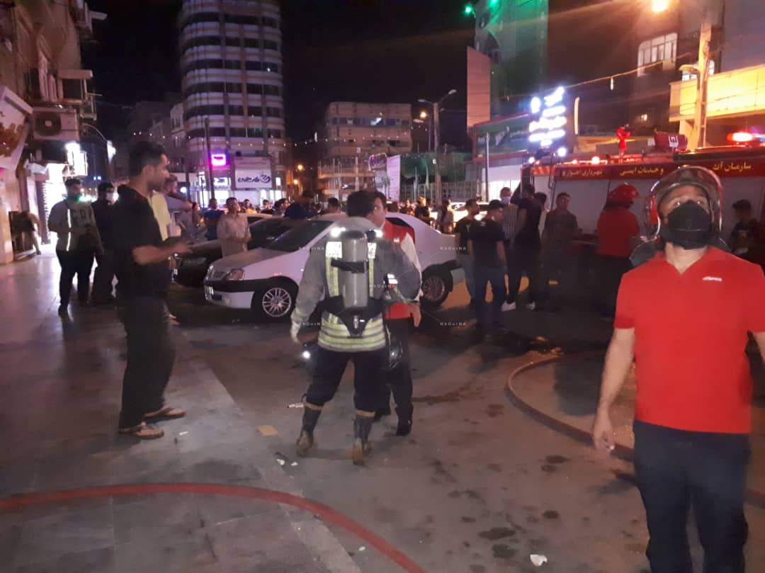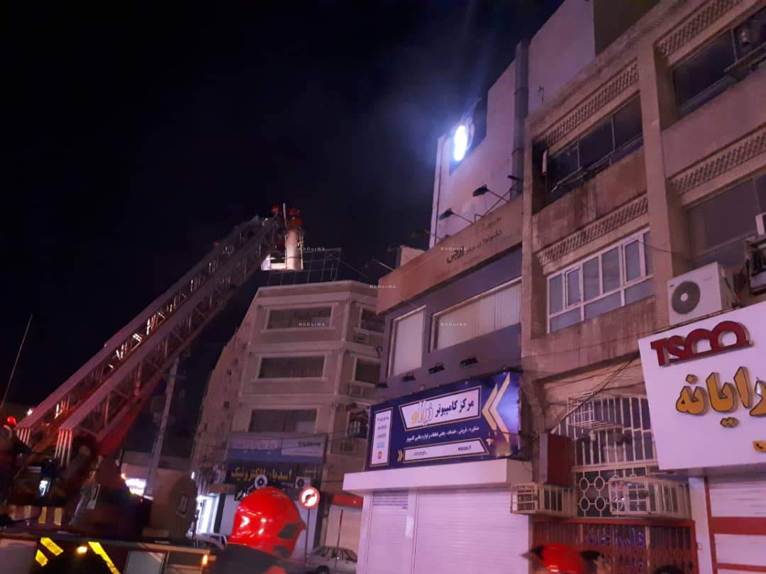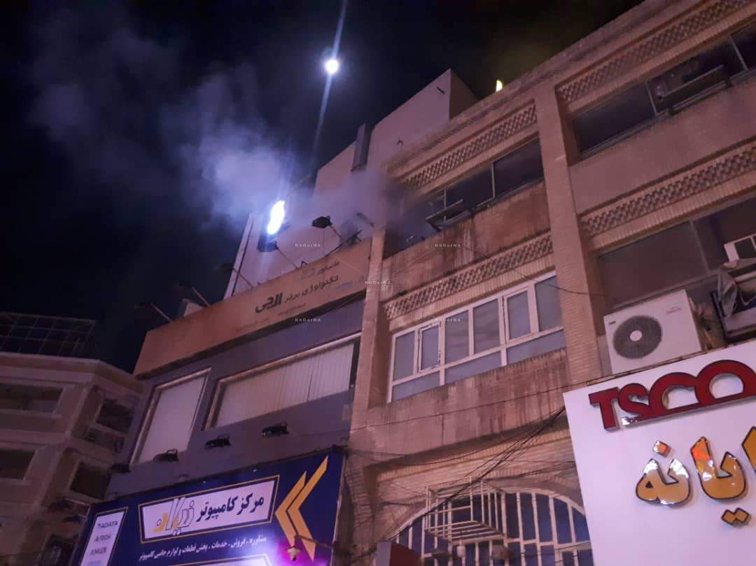 آتش سوزی ساختمان خدمات کامپیوتری در منطقه طالقانی اهواز + تصاویر
