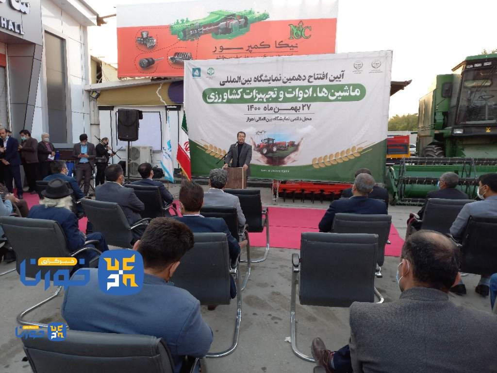دهمین نمایشگاه بین المللی ماشین ها، ادوات و تجهیزات کشاورزی استان خوزستان عصر امروز چهارشنبه ۲۷ بهمن ۱۴۰۰ با حضور رئیس مرکز توسعه میکانیزاسیون وزارت جهاد کشاوری در محل دائمی نمایشگاههای بینالمللی استان افتتاح شد.