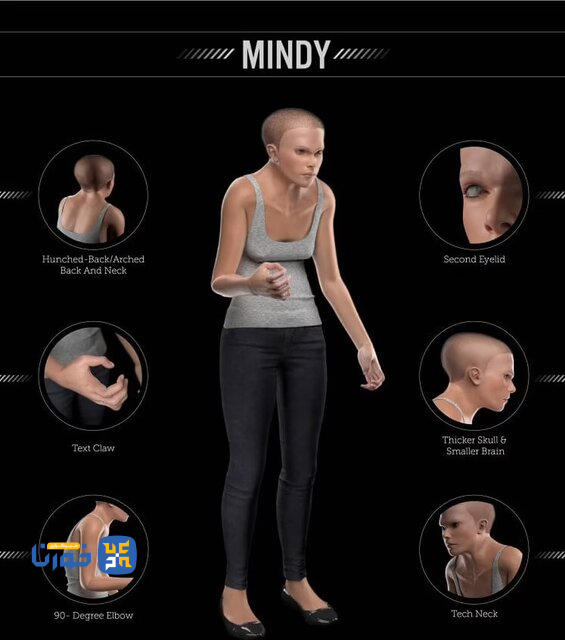 یک پروژه پژوهشی هشدار میدهد که استفاده بیش از حد از فناوری میتواند ناهنجاریهایی در بدن ما ایجاد کند. پژوهشگران با یک طراح سهبعدی برای ساختن تصاویری از “انسان آینده” همکاری کردند که مشکلات مربوط به فناوری را در استفاده روزانه از آن نشان میدهد. پژوهشگران نام این مدل سه بعدی را میندی(Mindy) گذاشتند.