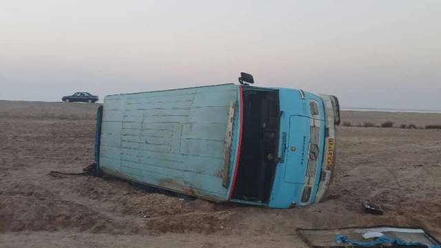 مصدومیت ۱۴ نفر در حادثه واژگونی مینیبوس در جاده آبادان – ماهشهر