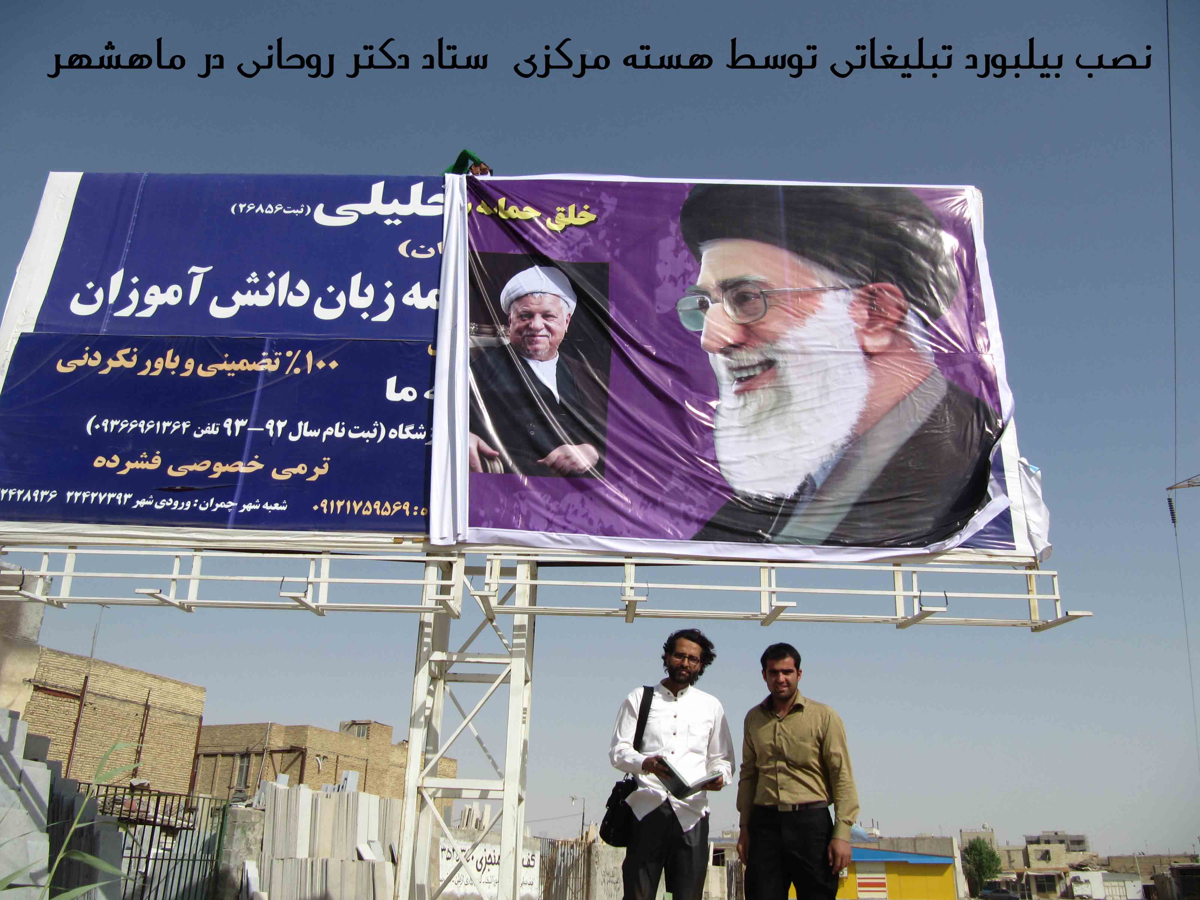 به گزارش خورنا،  بیلبورد تصویر رهبری همراه با خاتمی، هاشمی و روحانی در میدان انرژی هسته ای ماهشهر توسط هسته مرکزی ستاد تبلیغاتی دکتر روحانی نصب شد.