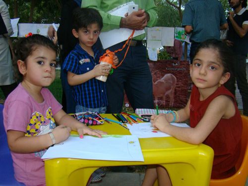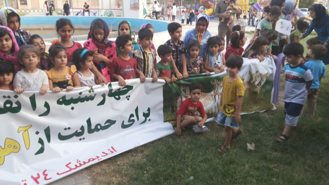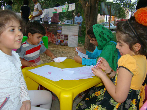 در این نمایشگاه کودکان با کشیدن نقاشی و خانواده ها با حمل پلاکارد بر