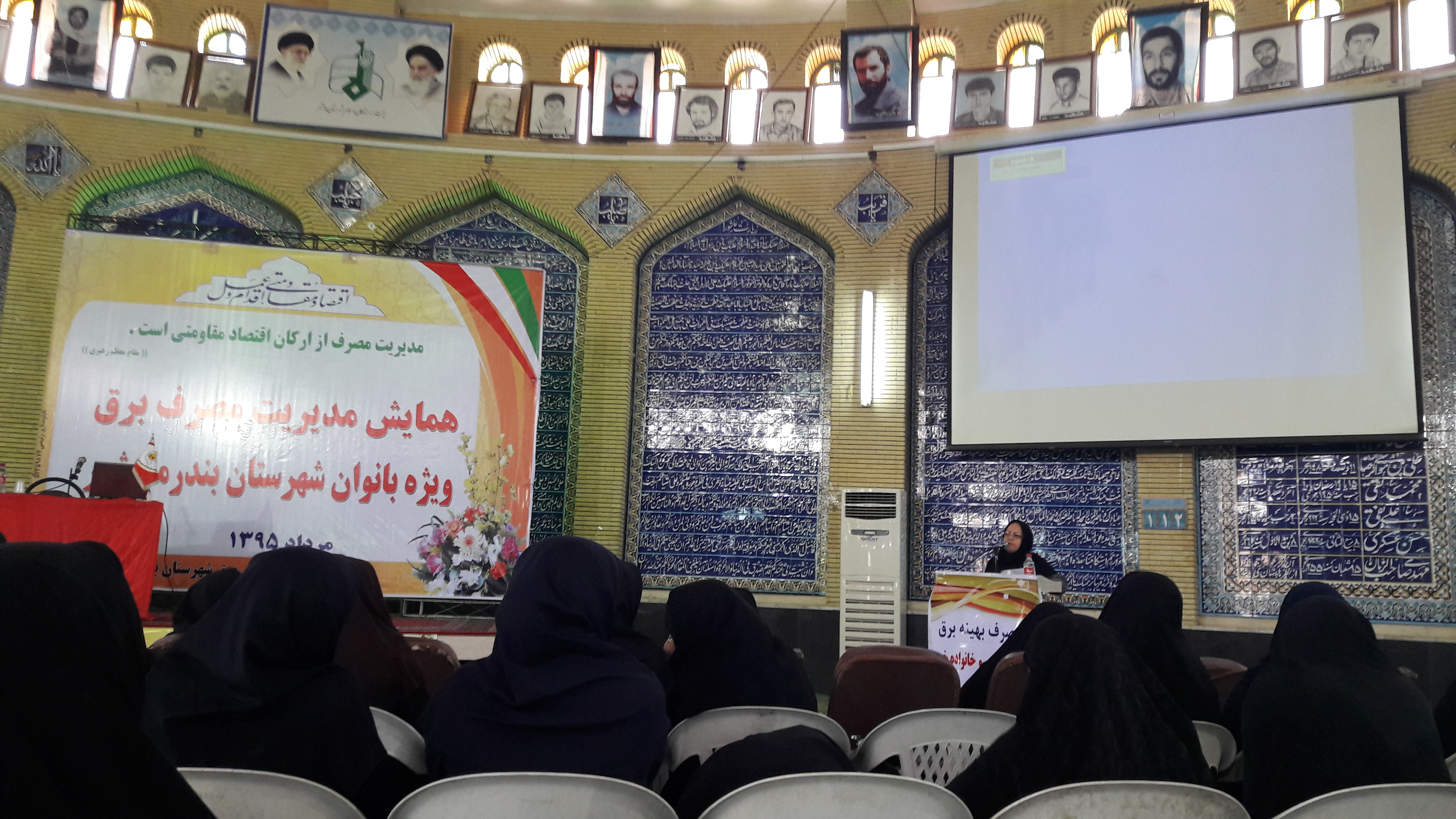 همایش مدیریت مصرف برق ، ویژه بانوان شهرستاتن بندر ماهشهر به همت خانم صادقی مسول کمیسیون بانوان و مشاورفرماندار در امور بانوان صبح امروز با حضور جمعی از بانوان شاغل در ادارات و سازمان های دولتی شهرستان و بانوان خانه دار، با سخنرانی شهناز احمدی مشاور مدیر عامل شرکت برق خوزستان برگزار شد.