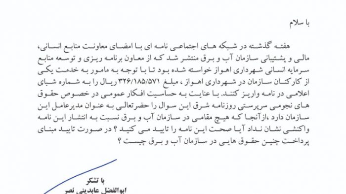 نامه سرگشاده فرماندار باغملک به مدیرکل اموزش و پرورش خوزستان در اعتراض به سفر پرهزینه روسای ادارات شهرستانها به مشهد احمدرضا رستمی