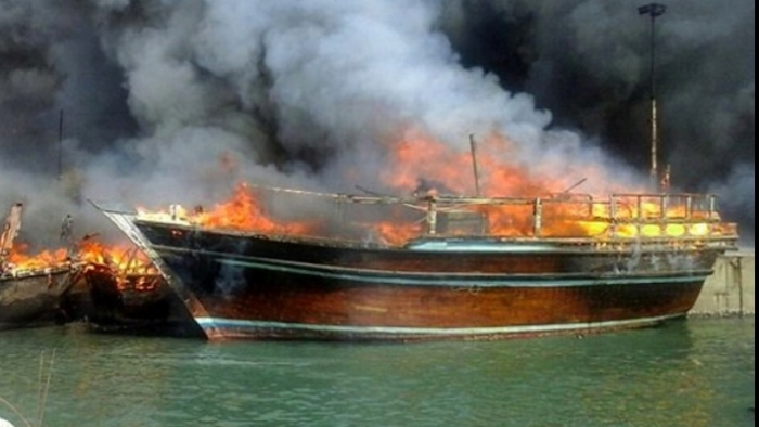چهار فروند لنج باری در عسلویه به طور کامل سوختند + فیلم